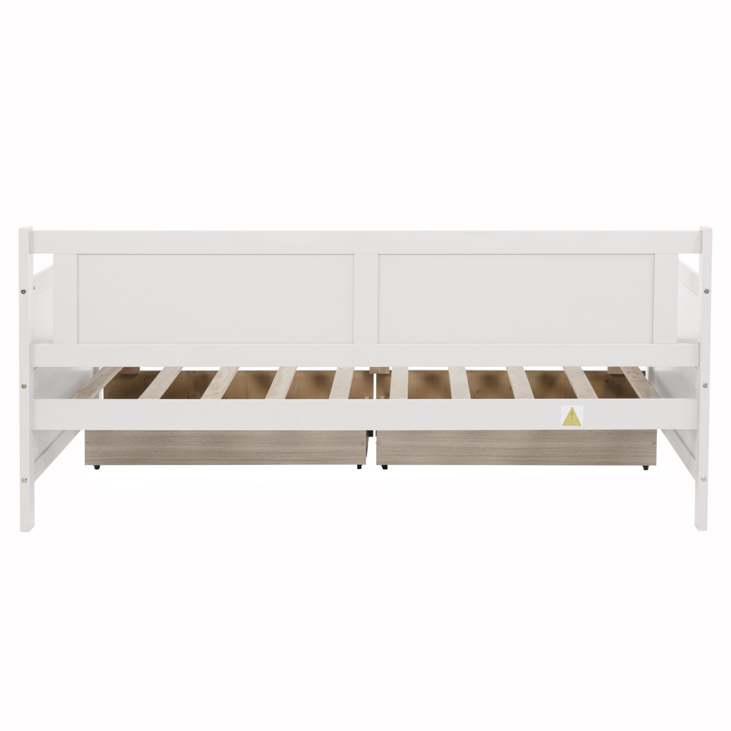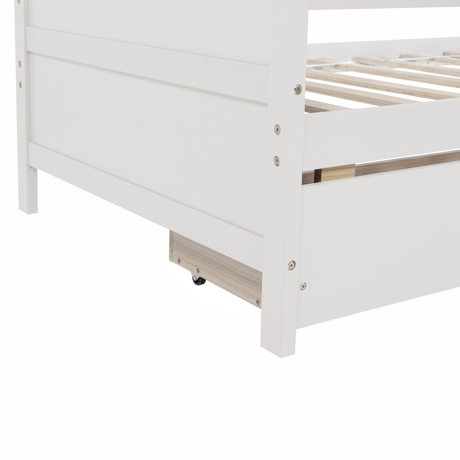 [Storage Drawers]There are 2 hideaway drawers integrated underneath the bed. The drawers provide ample room for storage of clothes, pillows, toys and other accessories, keeping the room neat and tidy with the pristine organizing function of the drawers.