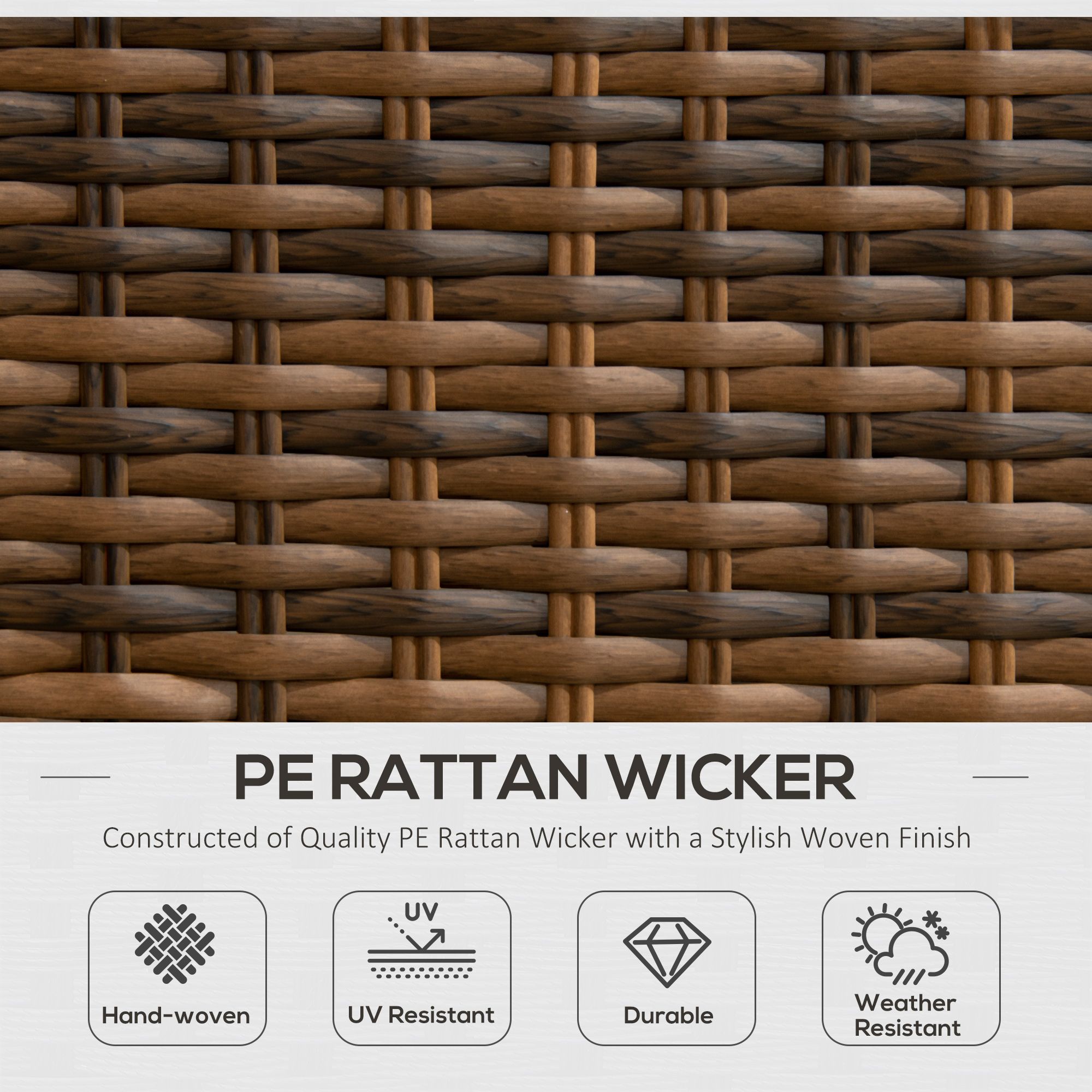 Our four-piece PE rattan patio furniture set brings indoor comforts outside. Everything is there: a loveseat, two swivel rocking chairs, and a two-tier tempered glass coffee table. Thick tufted cushions make for a seat that's easy to sit in and easy on the eyes. The fun and functionality of a rocking chair and a bar stool come together in a single set. Enjoy dining, drinks, or a game with friends. Each piece is hand-woven yet water safe for outdoor longevity. Get out, get comfy, get Outsunny.