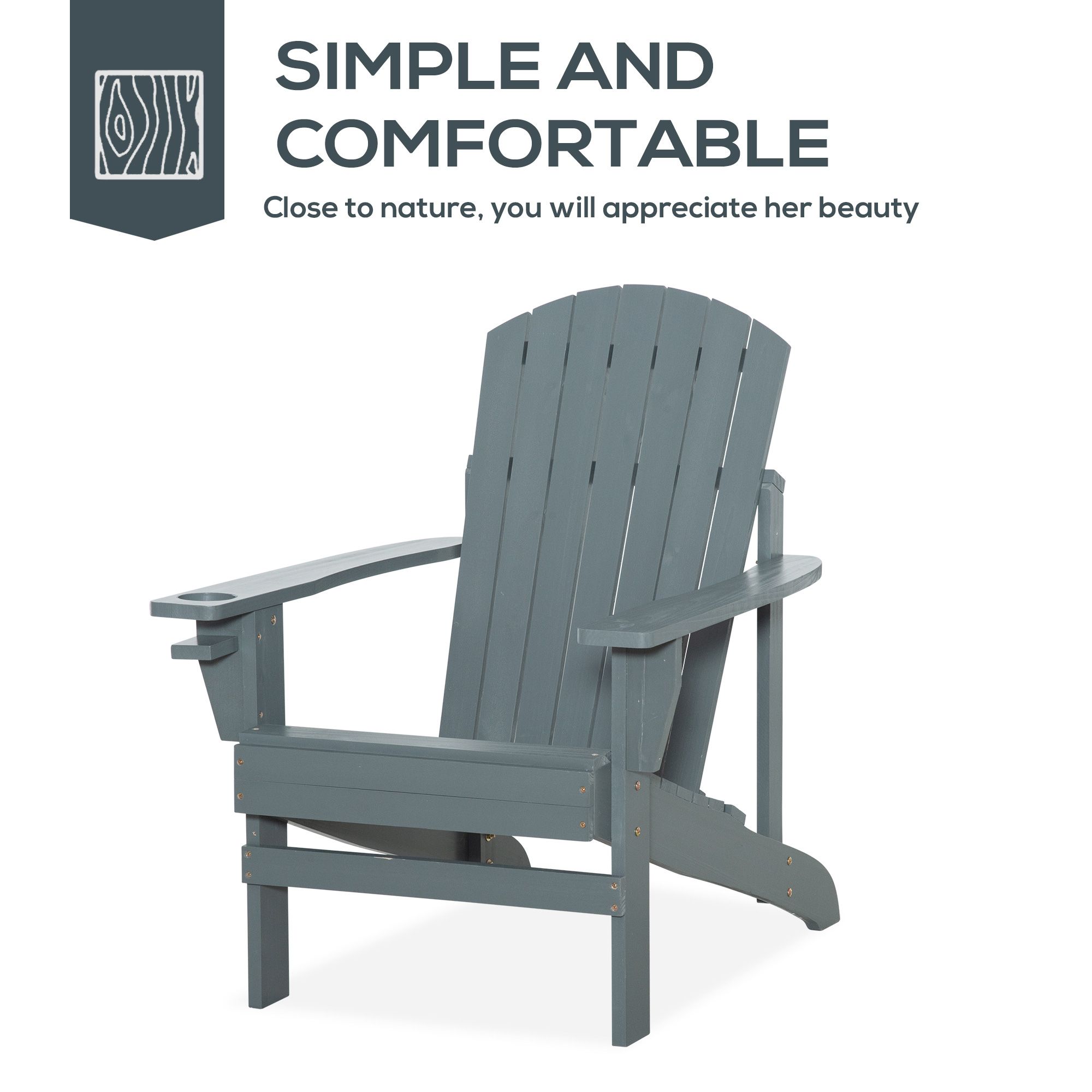 Lay low with Outsunny's relaxed back Adirondacks. Their seats are comfortably slanted and their wide armrests are complete with a cupholder. Tough and stylish, our Adirondack chairs are made with fir wood and fashioned into 7 slats, offering heavy-duty strength and a wide design that accommodates most body types. Invite over almost anyone and keep them comfy. An Adirondack is excellent as fire pit seating or on the front porch for a picnic with fireworks. Get out, get comfortable, get Outsunny.