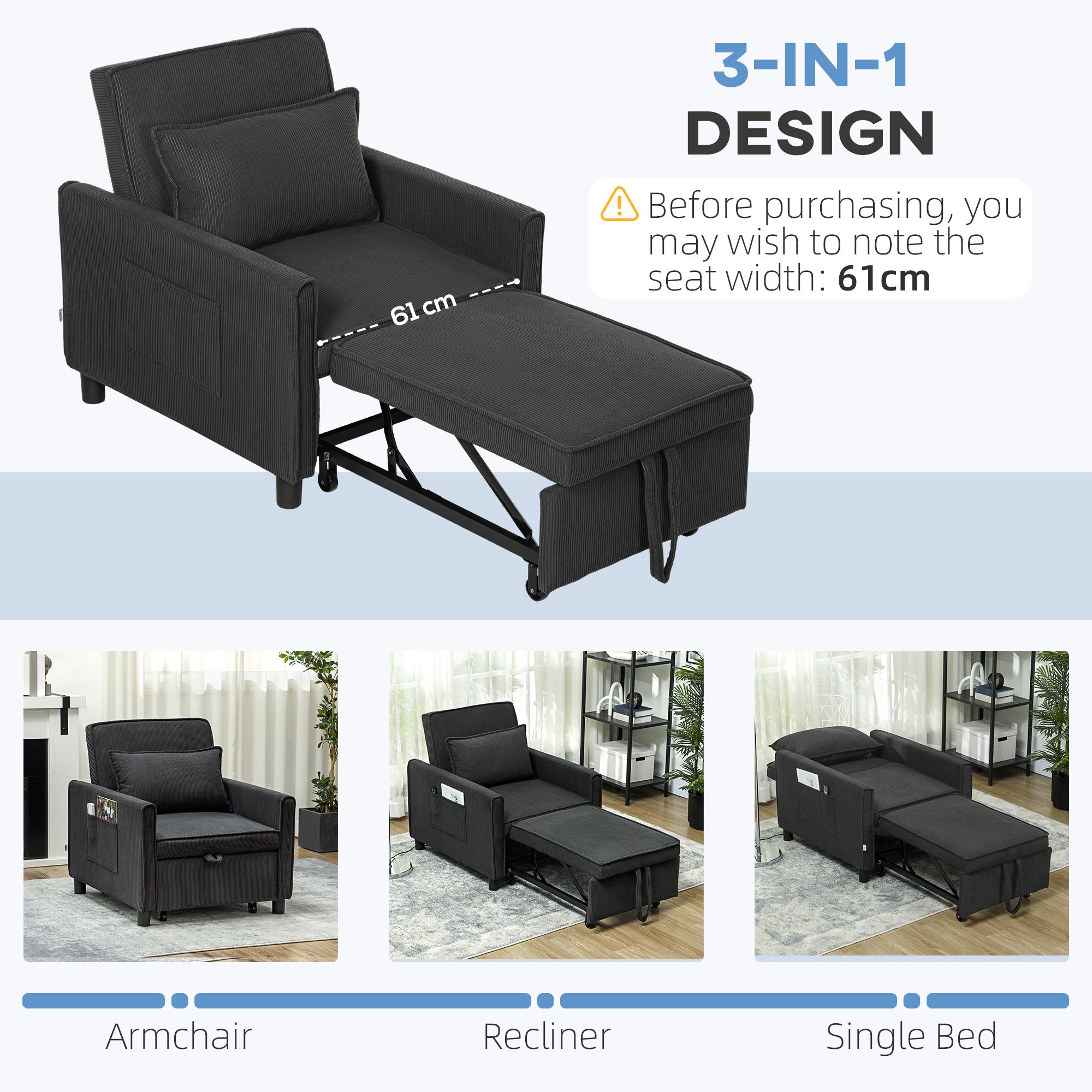 HOMCOM 3-in-1 Convertible Chair Bed, Pull Out Sofa Bed Sleeper Chair with Adjustable Backrest, Pillow, and Pockets, Dark Gray HOMCOM 3-in-1 Convertible Chair Bed, Pull Out Sofa Bed Sleeper Chair with Adjustable Backrest, Pillow, and Pockets, Dark Gray HOMCOM 3-in-1 Convertible Chair Bed, Pull Out Sofa Bed Sleeper Chair with Adjustable Backrest, Pillow, and Pockets, Dark Gray HOMCOM 3-in-1 Convertible Chair Bed, Pull Out Sofa Bed Sleeper Chair with Adjustable Backrest, Pillow, and Pockets, Dark Gray HOMCOM 3-in-1 Convertible Chair Bed, Pull Out Sofa Bed Sleeper Chair with Adjustable Backrest, Pillow, and Pockets, Dark Gray HOMCOM 3-in-1 Convertible Chair Bed, Pull Out Sofa Bed Sleeper Chair with Adjustable Backrest, Pillow, and Pockets, Dark Gray