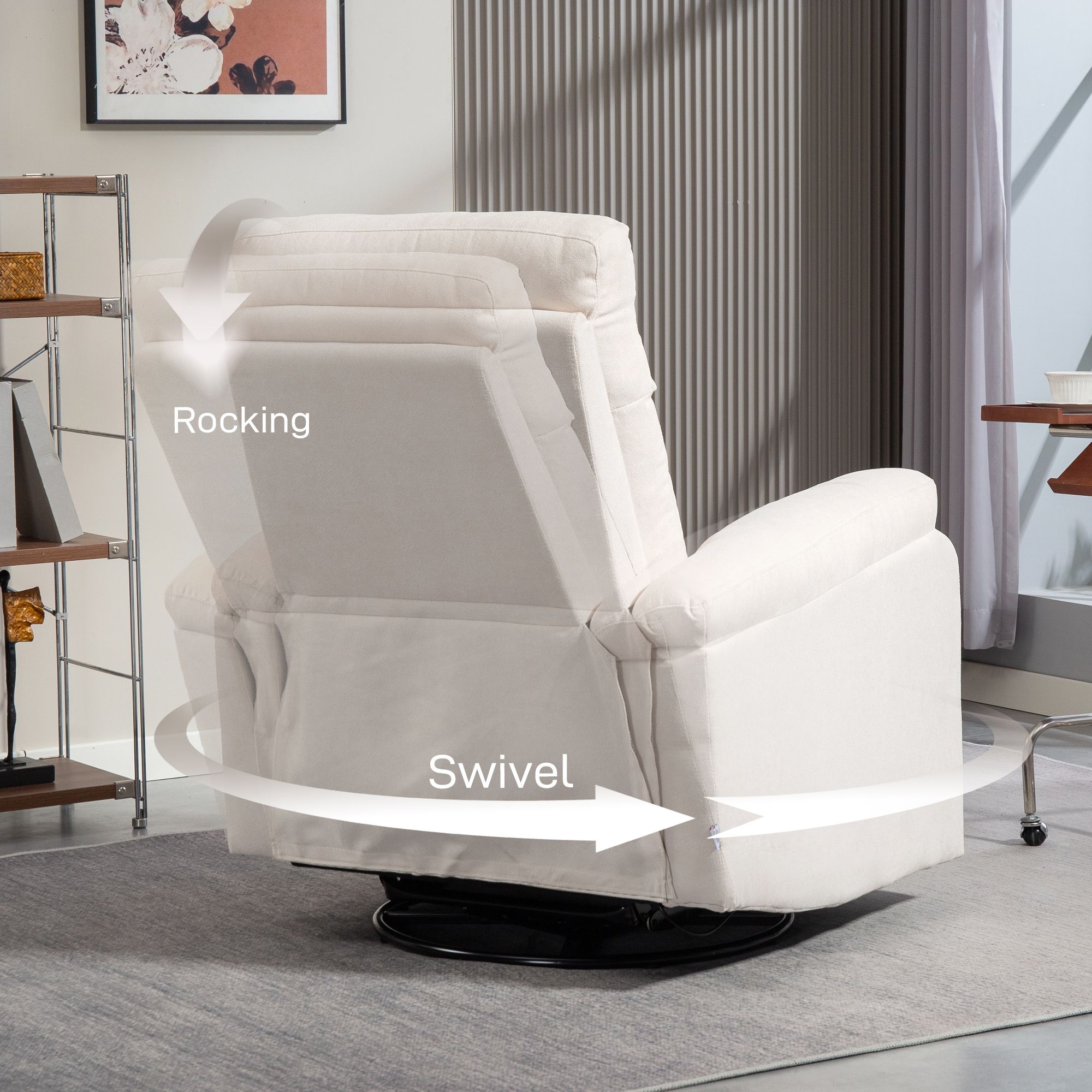 Sink into the comfort of the HOMCOM manual recliner chair, where relaxation meets style! Experience the hug of our pocket spring design for a stretchy seat that bounces back. With a 23.6" wide seat and extra thick padding, this swivel recliner chair invites you to recline to 140°, rock gently, or swivel 360°, seamlessly adjusting with a manual buckle.