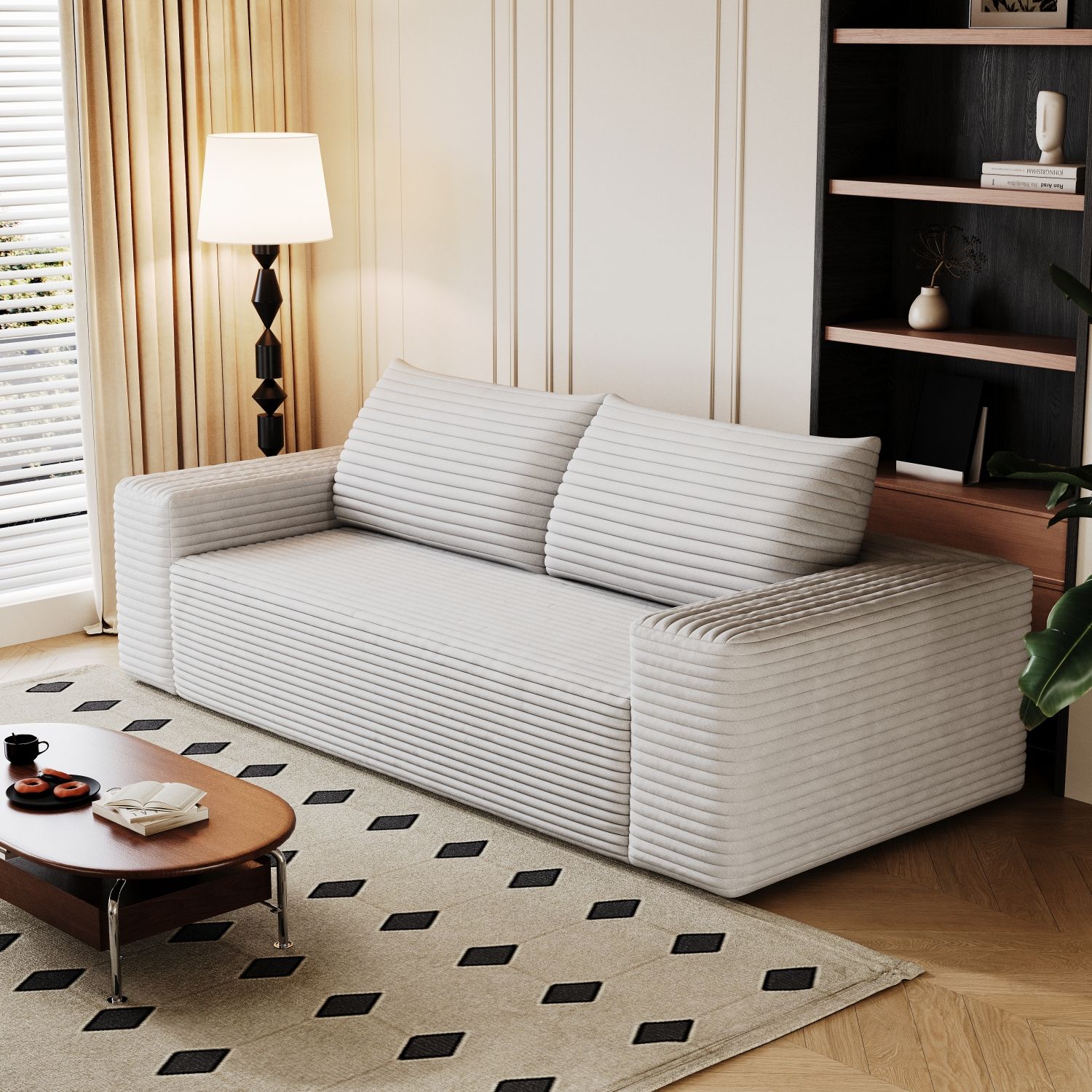 63" 2Setaser Sofa,Corduroy Fabric,Deep Seat Couches,Comfy Loveseat Sofa,No Assembly,1pcs for Living room, Bedroom,Conference room ,Apartment,White