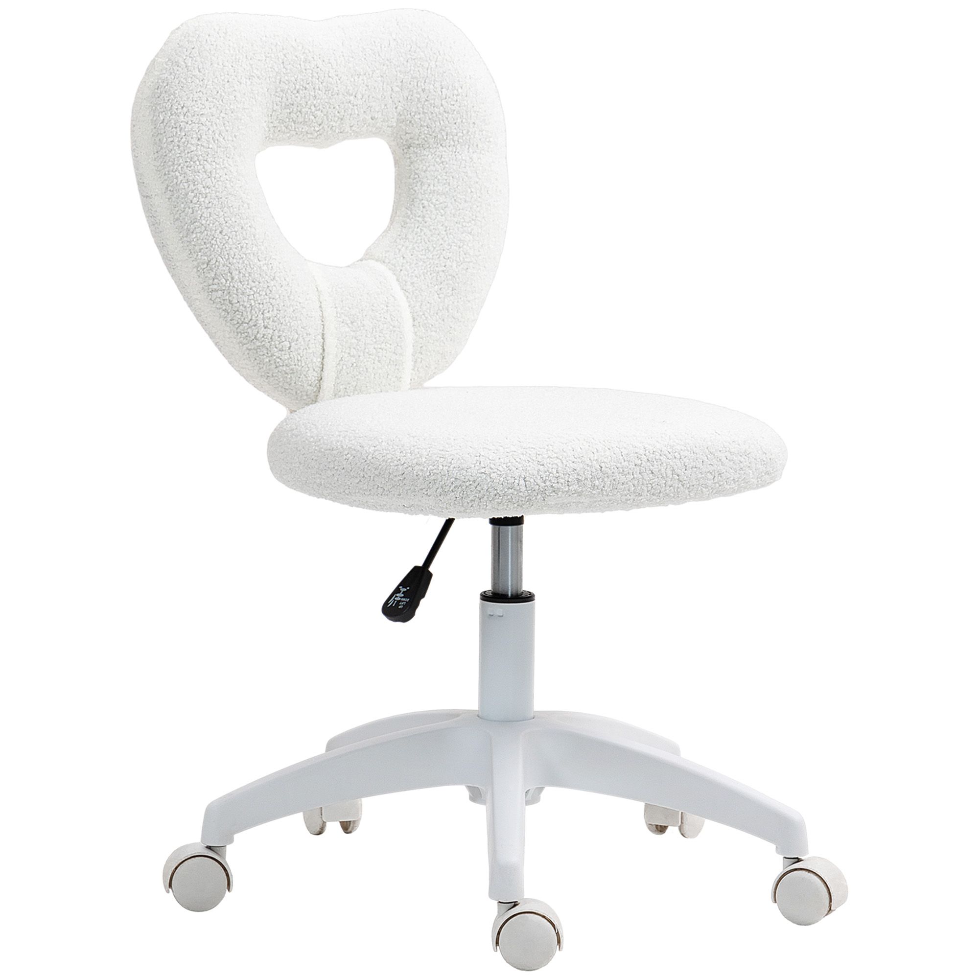 Home > HOMCOM Armless Computer Desk Chair, Office Task Chair, Teddy Fleece Heart Makeup Vanity Chair with Swivel Wheels, White