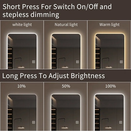 Wall mounted borderless rounded corner dressing mirror with lighting, size 65 "* 22", large enough.