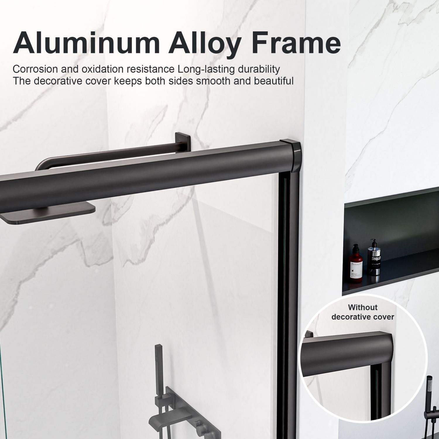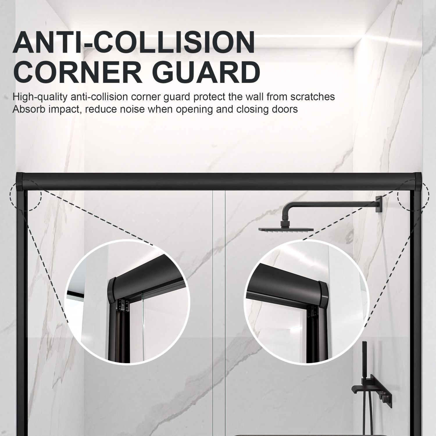 56"-60"W*72" H Semi-Frameless Double Sliding Shower Door, Bypass Shower Door, 1/4" (6mm) Thick SGCC Tempered Glass Door, Matte Black