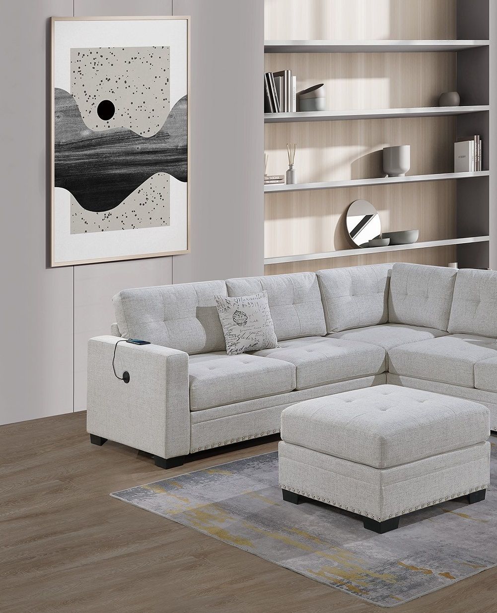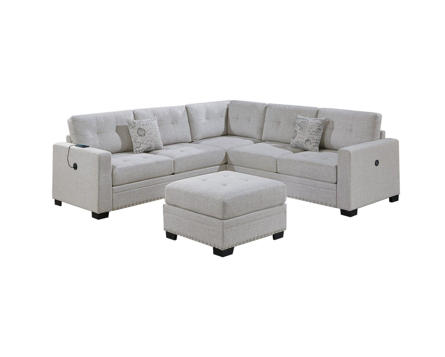 Listing Includes - 4pc Sectional Sofa Set (RAF/LAF One-Arm Loveseat W/USB, Corner Wedge, Cocktail Ottoman) Only.