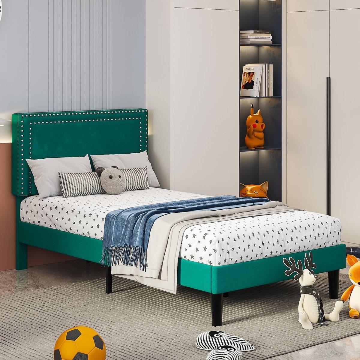 Set of 2 - Twin size Dark Green Upholstered Platform Bed Frame with Headboard Set of 2 - Twin size Dark Green Upholstered Platform Bed Frame with Headboard Set of 2 - Twin size Dark Green Upholstered Platform Bed Frame with Headboard Set of 2 - Twin size Dark Green Upholstered Platform Bed Frame with Headboard Set of 2 - Twin size Dark Green Upholstered Platform Bed Frame with Headboard