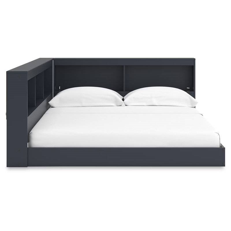 Ideal for avid young readers, this Corner Bookcase Headboard Storage Platform Floor Bed makes it easy to grab your favorite book from the comfort of your mattress. Crafted from solid and engineered wood, this corner bed is a smart, space-saving choice that brings a big style to small living areas. The integrated storage headboard and bookcase side rails work wonders for calming clutter, while the innovative design lets you flip the configuration to suit your space. This headboard even includes 2 slim-profile USB charging ports. Plus, you can add your preferred mattress (sold separately) without the need for a box spring.