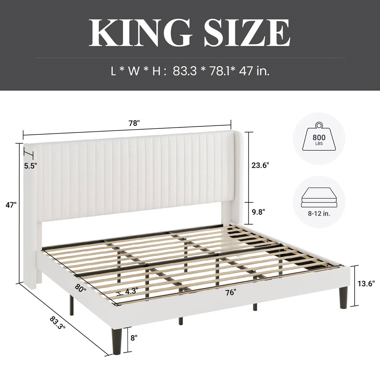 King size White Velvet Upholstered Platform Bed Frame with Wingback Headboard King size White Velvet Upholstered Platform Bed Frame with Wingback Headboard King size White Velvet Upholstered Platform Bed Frame with Wingback Headboard King size White Velvet Upholstered Platform Bed Frame with Wingback Headboard King size White Velvet Upholstered Platform Bed Frame with Wingback Headboard