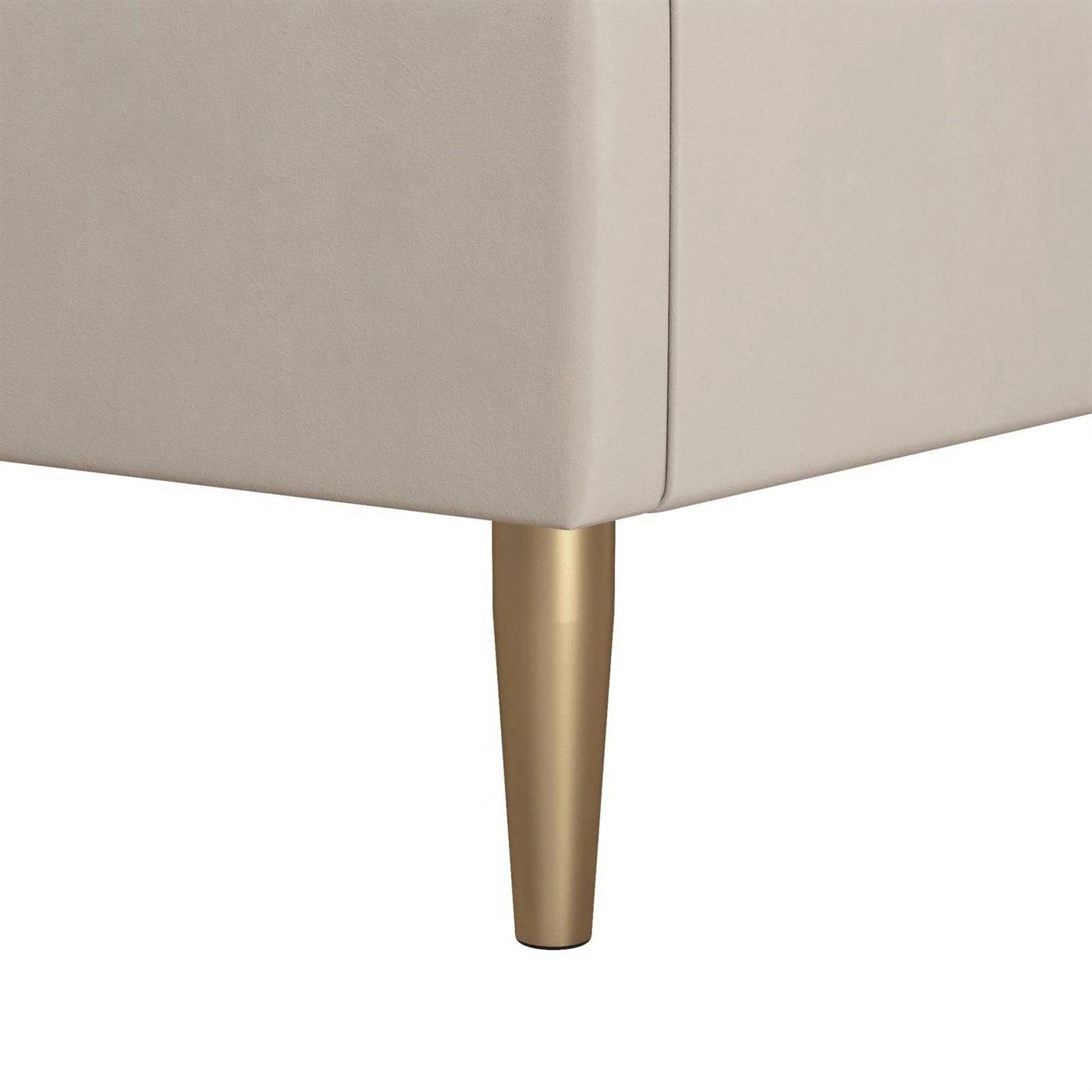 The King Mid-Century Off-White Velvet Upholstered Platform Bed Frame with Headboard doesn’t take itself too seriously but it also doesn’t mind being the center of attention. With its richly hued soft-to-the-touch upholstery, detailed vertical channel-tufted headboard, and brass-toned tapered metal legs, the Platform Bed sets the stage for a memorable design experience. It combines its ultra-luxe sensibilities with a serene slimline profile that is bound to maximize the look of any tightly spaced bedroom. Sleep in comfortable bliss knowing that the Platform Bed has been well-built with a sturdy wooden frame that features a secured bentwood slat system, metal side rails, and strong center legs. Offered in several opulent shades, the Platform Bed will serve as an anchor piece, confident enough to allow your indulgence in those DIY passion projects that will completely transform your room from bland to modern-day glam. So start sprinkling some of that fairy dust!