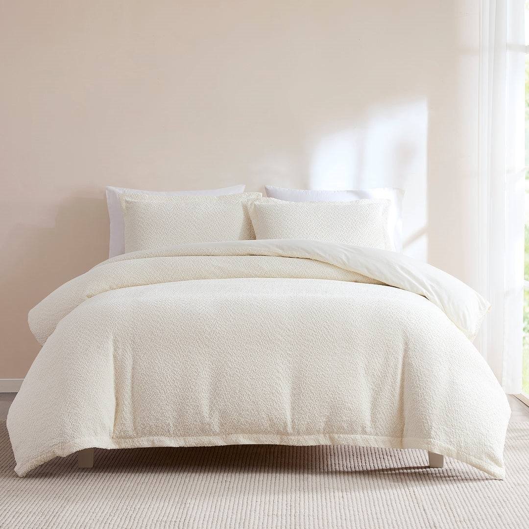 King Size 3-Piece Off White Boucle Duvet Cover Set