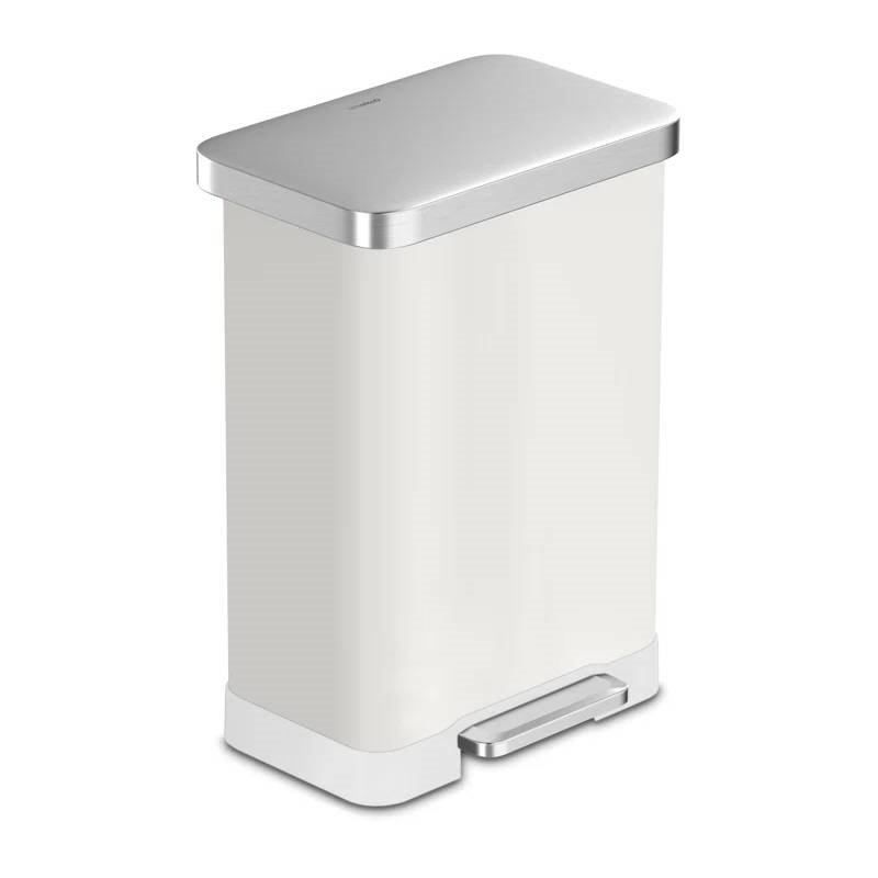 • White 20-Gallon Stainless Steel Kitchen Trash Can with Step-on Lid