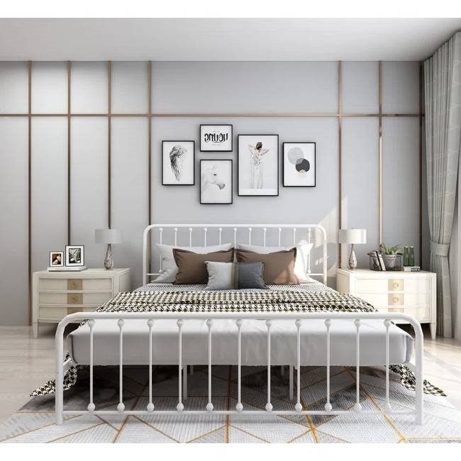 King White Metal Platform Bed Frame with Rounded Corners Headboard Footboard