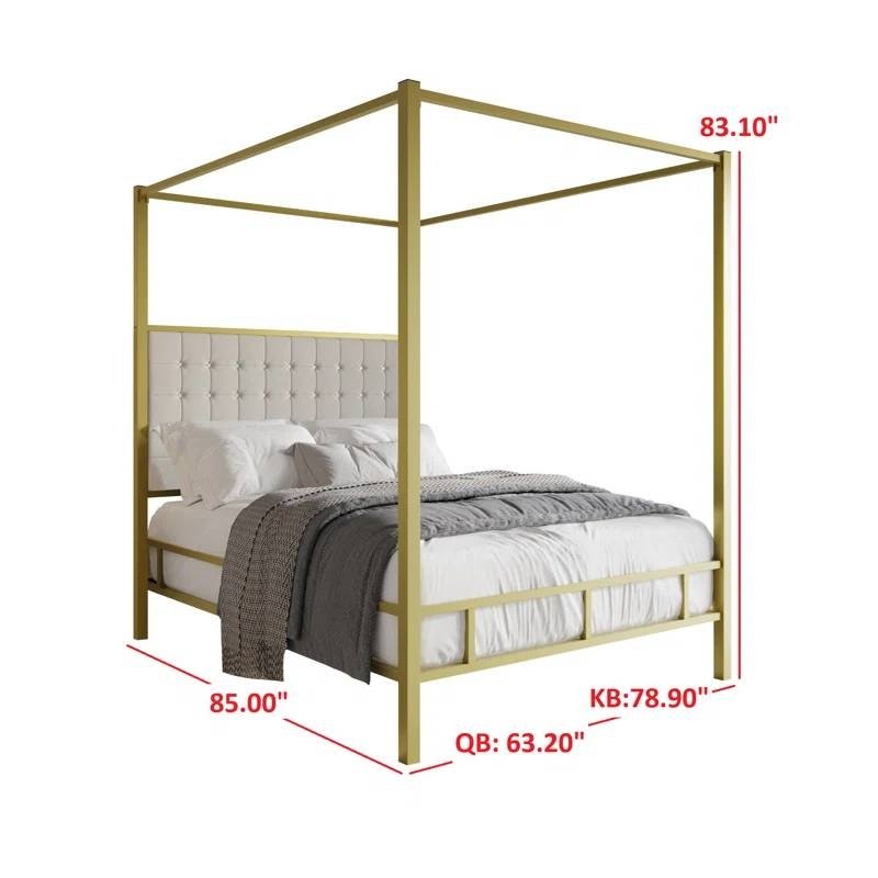 King size Gold Metal Canopy Bed with Upholstered Button-Tufted Headboard King size Gold Metal Canopy Bed with Upholstered Button-Tufted Headboard King size Gold Metal Canopy Bed with Upholstered Button-Tufted Headboard King size Gold Metal Canopy Bed with Upholstered Button-Tufted Headboard King size Gold Metal Canopy Bed with Upholstered Button-Tufted Headboard