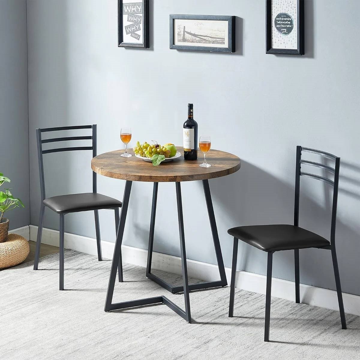 • Modern 3-Piece Kitchen Dining Set with Round Wood-Top Table and 2 Chairs