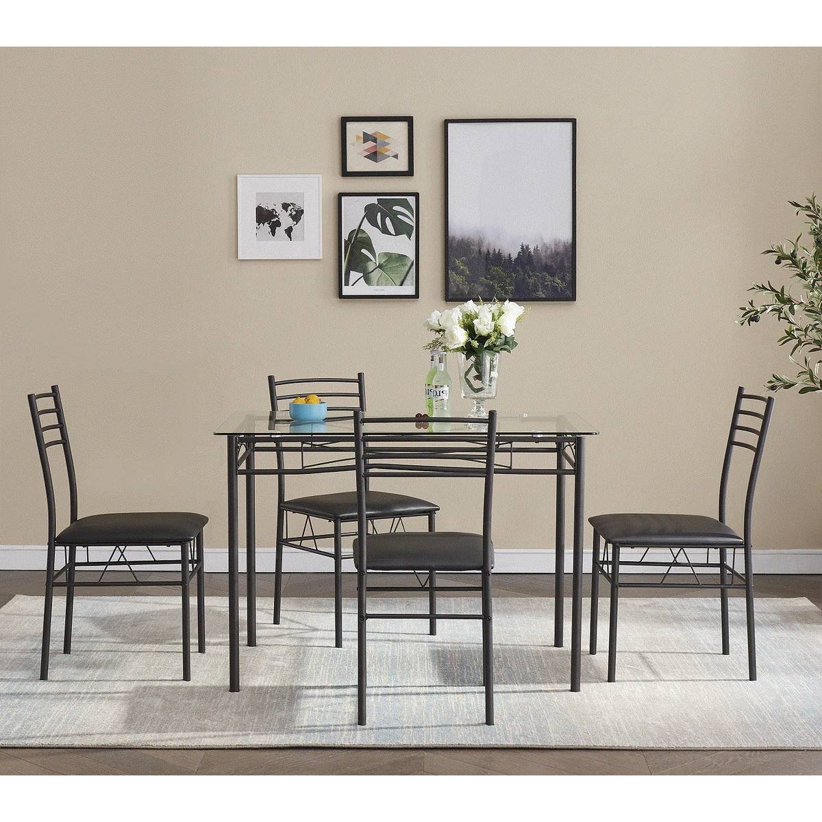 Black 5-Piece Dining Set with Rectangular Glass-Top Table and 4 Chairs Black 5-Piece Dining Set with Rectangular Glass-Top Table and 4 Chairs Black 5-Piece Dining Set with Rectangular Glass-Top Table and 4 Chairs Black 5-Piece Dining Set with Rectangular Glass-Top Table and 4 Chairs Black 5-Piece Dining Set with Rectangular Glass-Top Table and 4 Chairs
