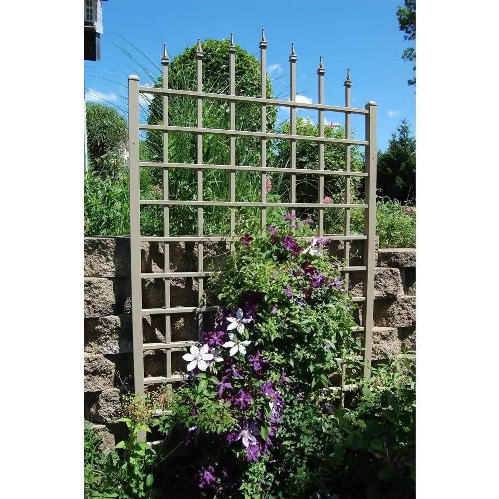 Get ready to garden like a pro with this 8-Foot Outdoor Garden Trellis in Mocha Brown Vinyl PVC. With a classic, stylish look, detailed design, and durable construction, your garden will look like a wonderland of greenery. Measuring 57 by 95 inches, this garden trellis is strong enough for outdoor plants, indoor plant pots, or climbing vines, and is an essential addition to your gardening supplies. This grid-style trellis can be leaned against a wall or can be effortlessly attached to any wood or vinyl siding, Setup is quick and easy, as pieces are pre-cut and pre-drilled with all the hardware included. Crafted with durable PVC, this trellis boasts the highest titanium dioxide concentration for unparalleled sunlight protection. Once assembled and installed in your yard, the 8-Foot Outdoor Garden Trellis in Mocha Brown Vinyl PVC demands minimal maintenance – a simple spray with a garden hose and a wipe clean is all it takes to keep it looking pristine. Say goodbye to worries about delamination, cracking, peeling, fading, or discoloration; this plant support trellis is built to withstand the elements with unwavering resilience. Elevate your gardening experience with this high-quality, low-maintenance trellis that lets your greenery take center stage.