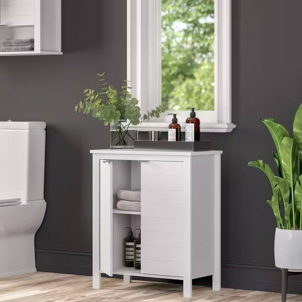Bathroom Linen Cabinet with Storage Shelf in White Wood Finish