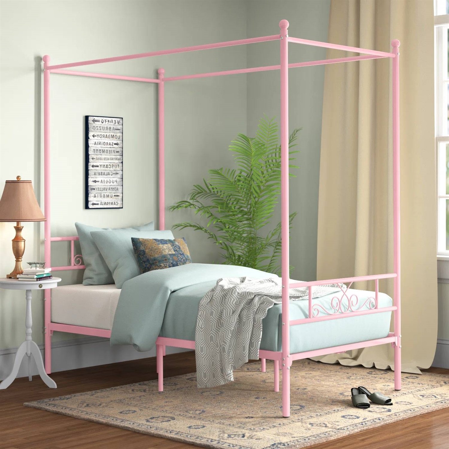 Twin size French Country Style Four Poster Metal Canopy Bed in Pink Finish Twin size French Country Style Four Poster Metal Canopy Bed in Pink Finish Twin size French Country Style Four Poster Metal Canopy Bed in Pink Finish Twin size French Country Style Four Poster Metal Canopy Bed in Pink Finish Twin size French Country Style Four Poster Metal Canopy Bed in Pink Finish