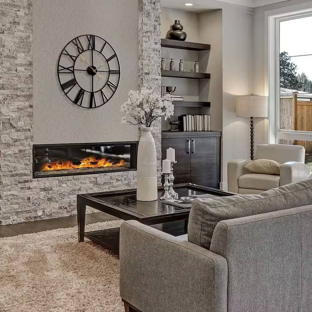 This Round 24-inch Black Metal Roman Numeral Wall Clock with Gold Hands is forged from sturdy iron and is sure to grab everyone's attention. The large Roman numerals and artfully designed ultra-thin hands make both its style and construction a unique addition to your home, while accurate quartz movement ensures precision. Its extra-large 24 inch diameter and brushed finish catch your eyes. European large retro metal clock in hollowed-out design without glass lens and no seconds style. Lacquer dial in glossy finished stands out against the ultra-thin brushed golden hands, which is a exquisite hand welded iron artworks. Battery operated wall clocks adopts quality quartz Taiwan SUN 1288 sweep movement for keeping silent and precision. Enjoy your life in the peaceful moments! 24" large wall clock with oversized black roman numerals in contrast with brushed golden hands for easily reading. Simple design with a good performance. Comes with a non-traceable hook, easy to hang. Vintage indoor outdoor metal wall clock is suitable for varieties of architectural decor style, perfect to decorative for your home, loft, cafe, living room, kitchen, bedroom, garden, patio, pool decor. Powered by 1 x AA CARBON battery (not included). You won't worry about a fault of the clock.We assured you 1-year warranty and 90-day full refund if faulty.