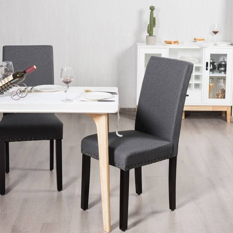 • Set of 2 Grey Linen Upholstered Nailhead Dining Chair - 330 lbs. Weight Capacity