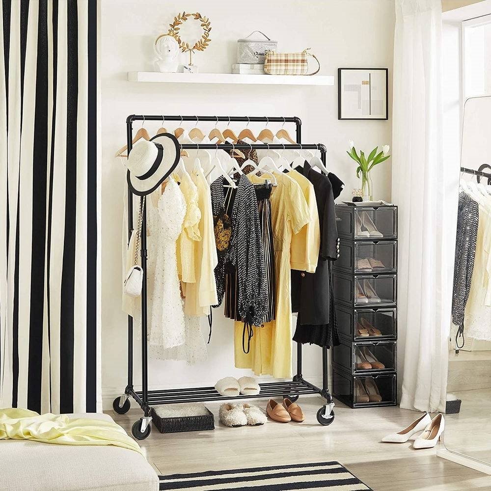 • For exceptional built quality, high weight capacity and convenient mobility - look no further than SONGMICS Industrial Pipe Double Rail Garment Rack.