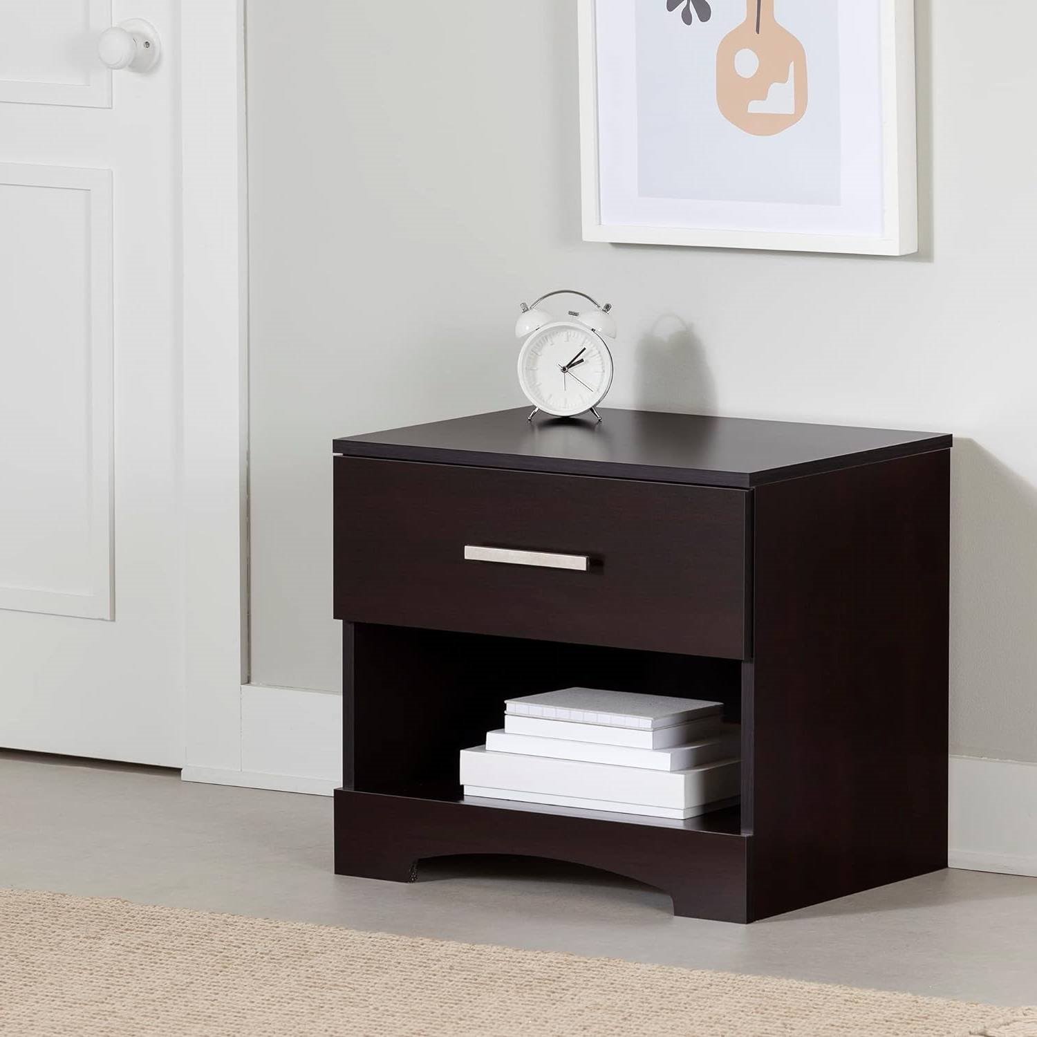 Modern 1 Drawer Nightstand End Side Table Storage in Dark Brown