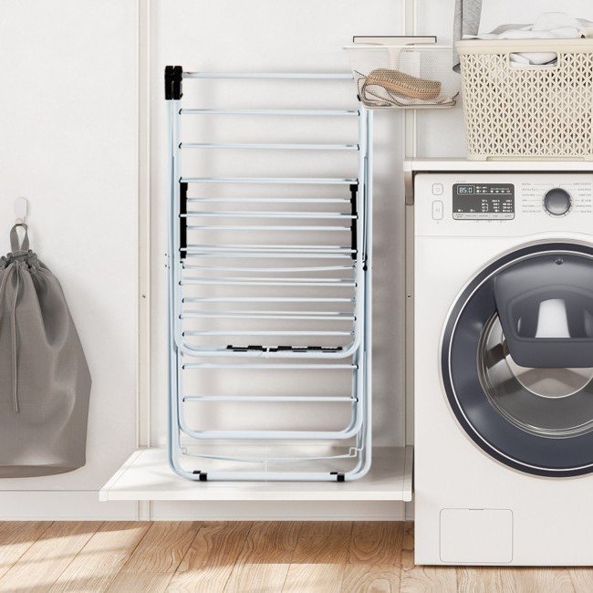 Home > White 2 Level Foldable Clothes Drying Rack Adjustable Height