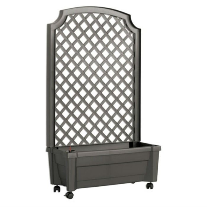 The Indoor/Outdoor Grey Polypropylene Wheeled Trellis Planter is a truly unique one-of-a-kind planter designed in Holland, the land of flowers. Elegant and classic, this Indoor/Outdoor Grey Polypropylene Wheeled Trellis Planter is ideal to grow your fondest plants that may require a support frame.. It has a clever double bottom self-watering system. It has lockable wheels, which make it easy to move from one place to another. The square-shaped planter can be used both indoors and outdoors. The planter is easy to maintain as it is water, warp, and fade resistant. It requires some assembly when it is being set up.