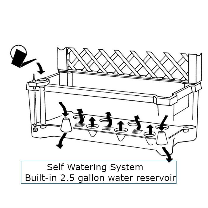 The Indoor/Outdoor Green Polypropylene Wheeled Trellis Planter is a truly unique one-of-a-kind planter designed in Holland, the land of flowers. Elegant and classic, this Indoor/Outdoor Green Polypropylene Wheeled Trellis Planter is ideal to grow your fondest plants that may require a support frame.. It has a clever double bottom self-watering system. It has lockable wheels, which make it easy to move from one place to another. The square-shaped planter can be used both indoors and outdoors. The planter is easy to maintain as it is water, warp, and fade resistant. It requires some assembly when it is being set up.