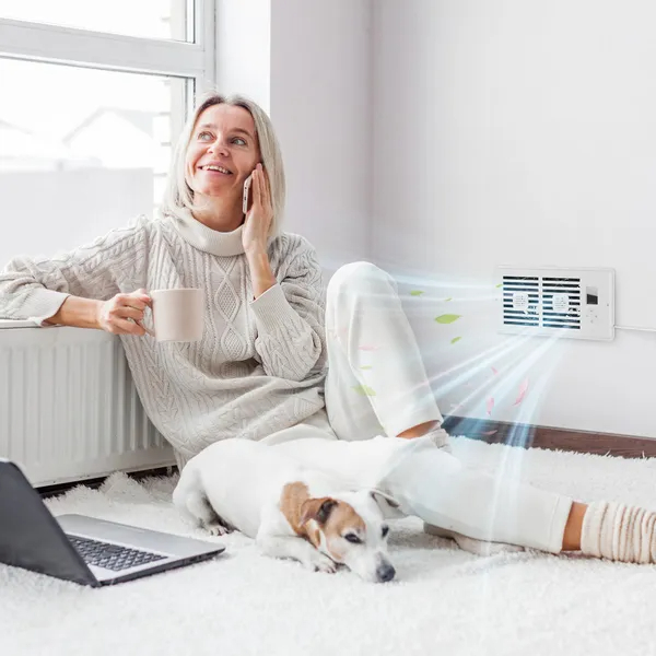 *Ventilation Booster Fan*:This fan system enhances airflow through your wall and floor HVAC ducts to improve home comfort. It eliminates uneven room temperatures with high-precision temperature sensor,automatically turning on/off to maintain your desired climate setting.