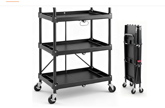 • 【Large & Portable Foldable Cart】Measuring 25.6”L x 15.9”W x 38”H, this portable utility cart offers 3 tiers of storage with a 40-lbs capacity per shelf. Ideal for organizing tools, supplies, or snacks. Folded down to just 4.9” thick, it stores effortlessly in closets, car trunks, or tight spaces.