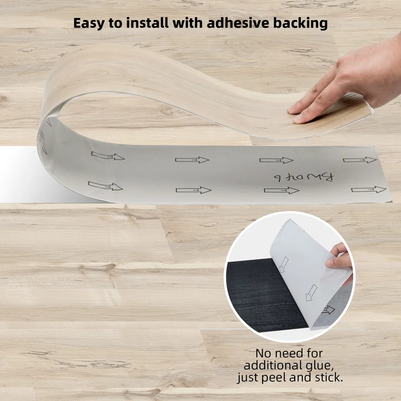 Upgrade your space with our Jeedeson self-adhesive vinyl composite floor tiles. Made from durable PVC material, these floor tiles are built to last. The wood grain texture adds a touch of natural beauty, creating a warm and cozy atmosphere. Say goodbye to the high costs and tedious maintenance of traditional wood flooring. Our self-adhesive vinyl composite floor tiles are affordable without compromising on quality or style. Easily transform your space and enjoy the aesthetic appeal of our floor tiles.