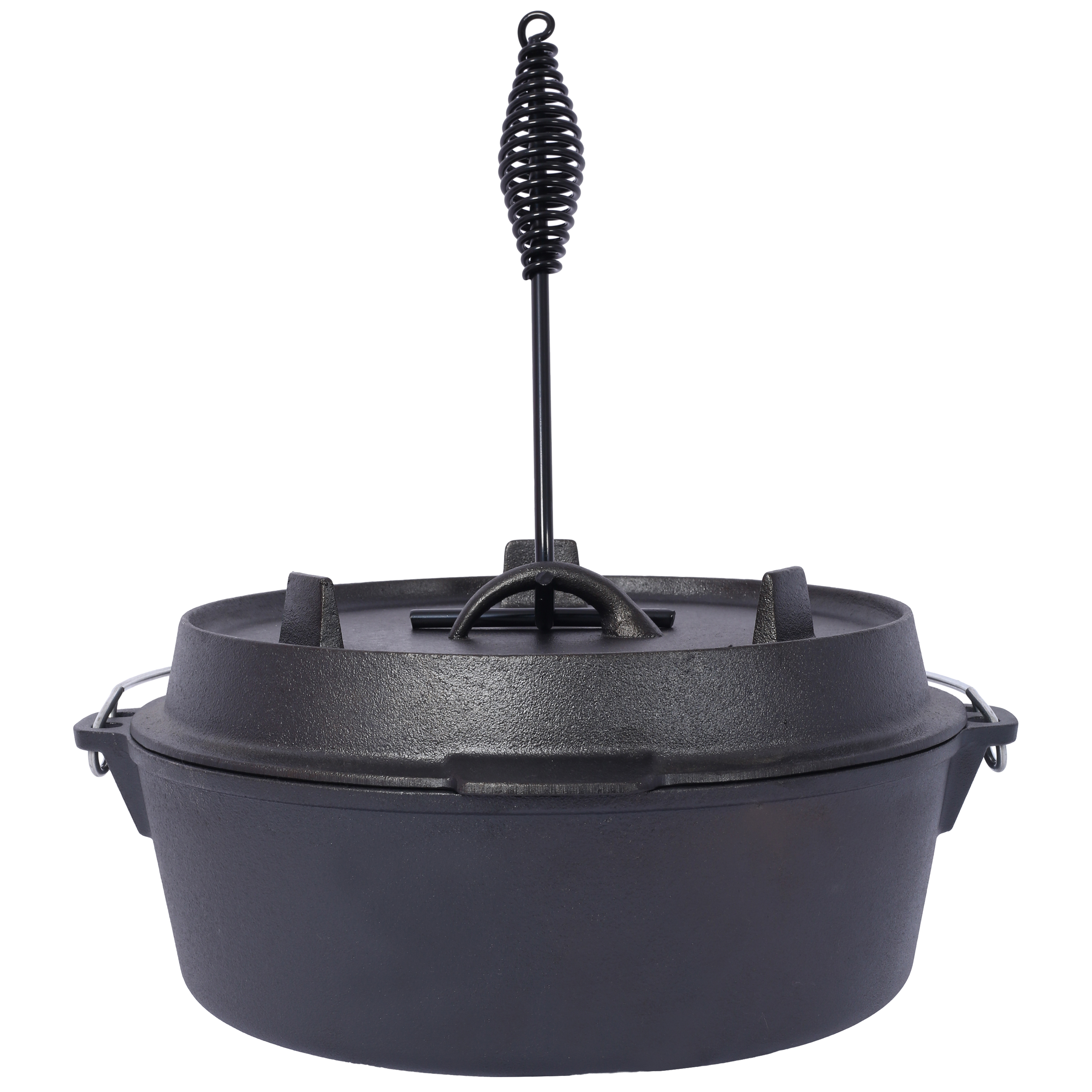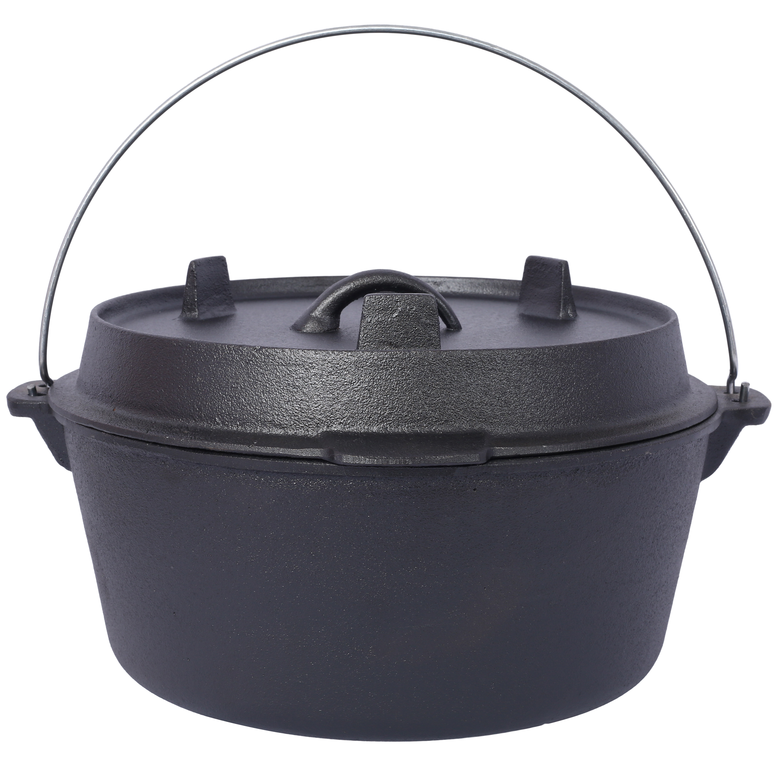 • Designed with convenience at its core, this cast iron Dutch oven features a robust built-in carrying handle, enabling you to effortlessly tote it from your vehicle to the campsite. Moreover, the oven can be securely suspended from a tripod stand on level surfaces, providing you with unparalleled flexibility in your cooking setup. With its seamless combination of portability and adaptability, this Dutch oven is the ultimate companion for any outdoor cooking enthusiast.