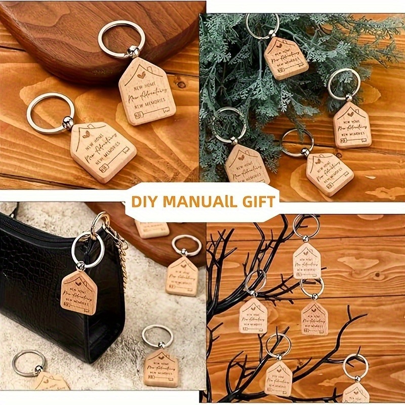 Home > 50 Wooden Keychain House-Shaped Key Tags - Laser Engraved DIY Crafts, Natural Wood Key Organizer, Unique Home Decoration, Valentine's Day Gift, Perfec