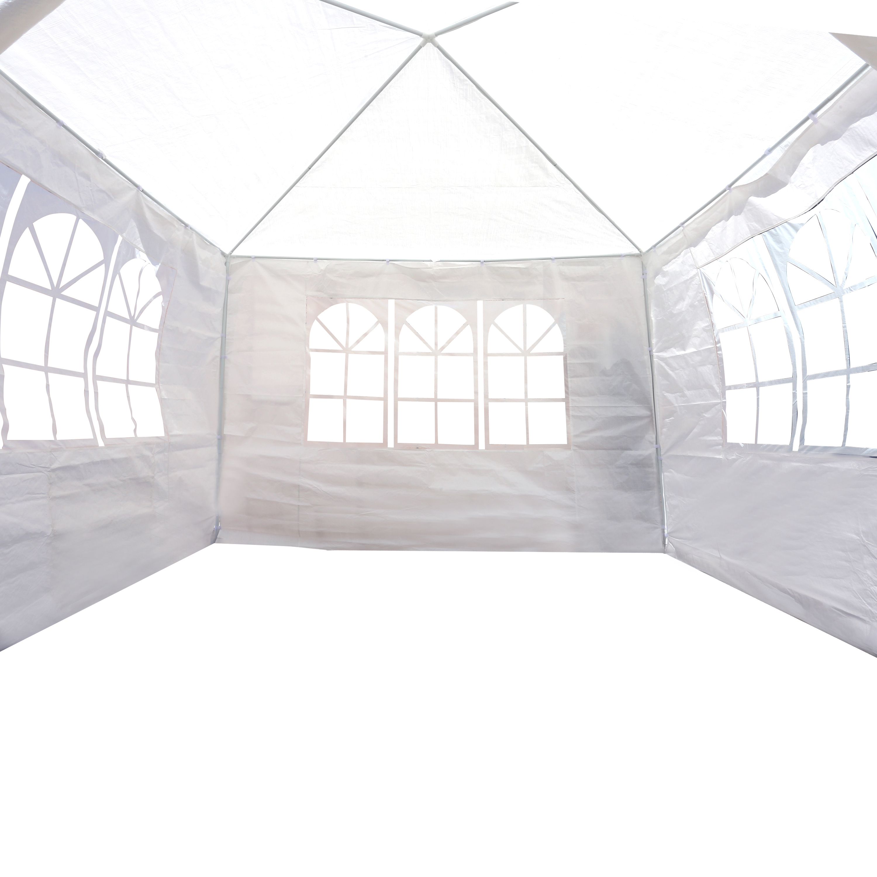• Detachable Sidewalls: The tent includes 4 sidewalls with hook & loop fasteners for easy attaching and removal according to your needs. 3 sidewalls feature transparent church windows to let in plenty of natural light and provide clear landscape views, while the zipper door allows for easy access and good ventilation on hot days, ensuring comfort and convenience for your outdoor events.