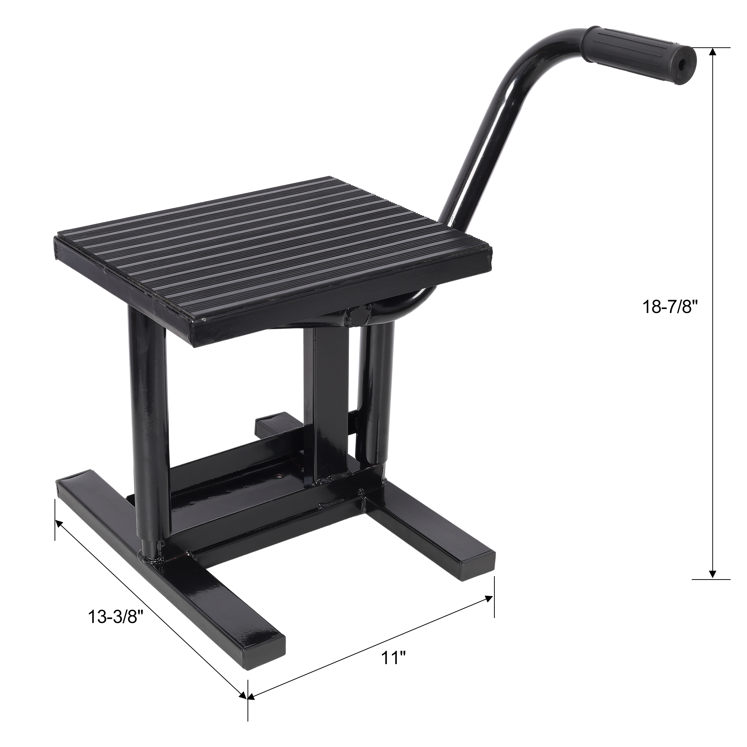 Product Name:Motorcycle Dirt Bike Stands and Lifts Jack Stand Steel Lift 11 7/8"-16" Adjustable Height 330 LBS Load Capacity Heavy Duty Steel Black