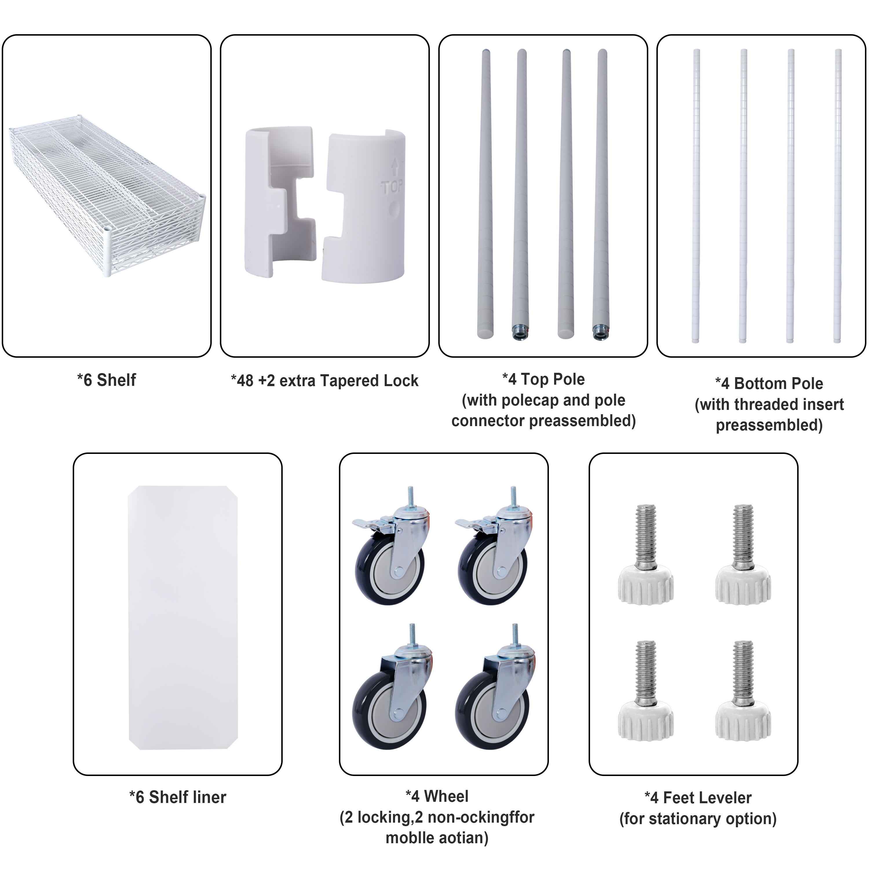 Product Name:6 Tier 6000lbs Capacity NSF Metal Shelf Wire Shelving Unit, Heavy Duty Adjustable Storage Rack with Wheels & Shelf Liners for Commercial Grade Utility Steel Storage Rack, white - 84"H x 48"L x 20"D