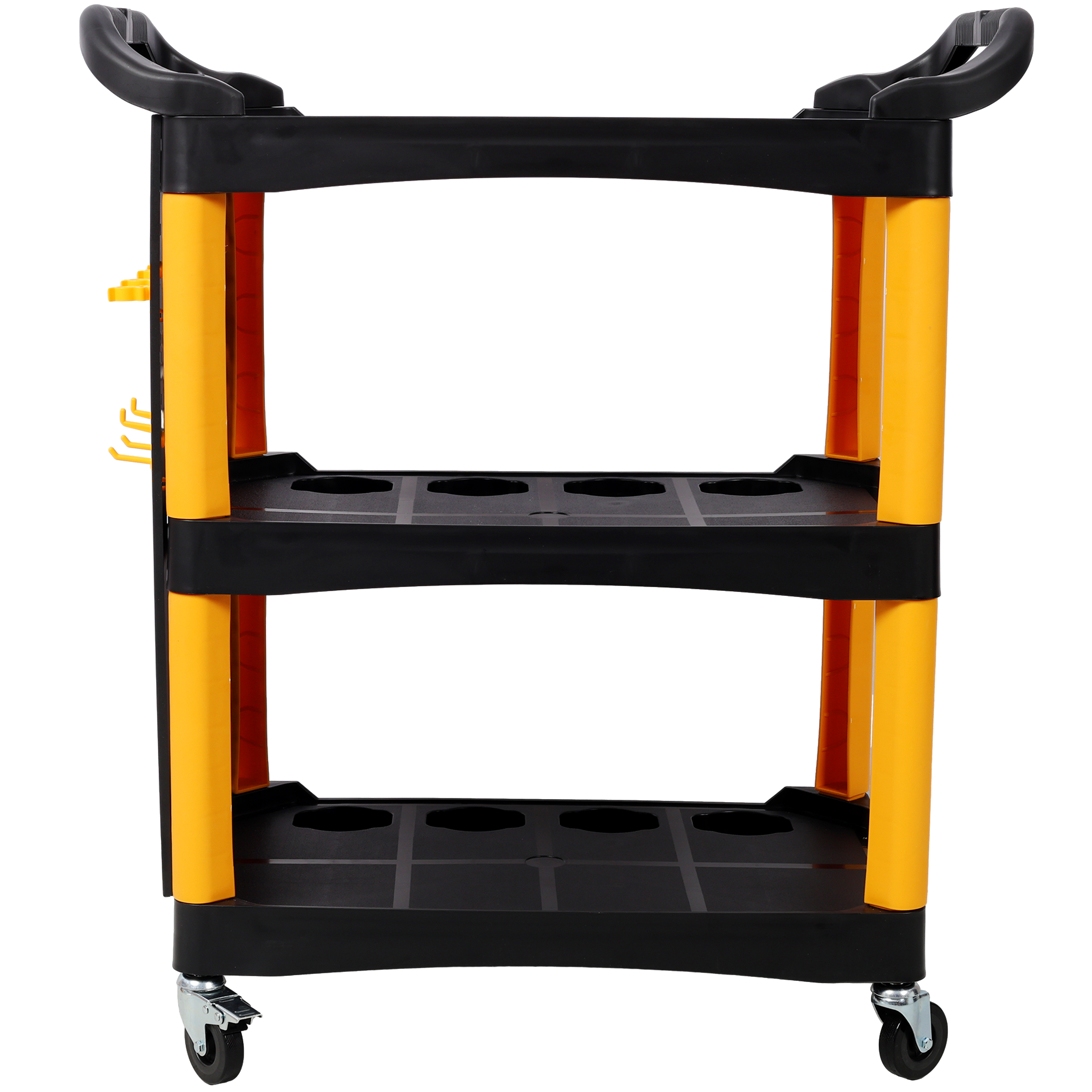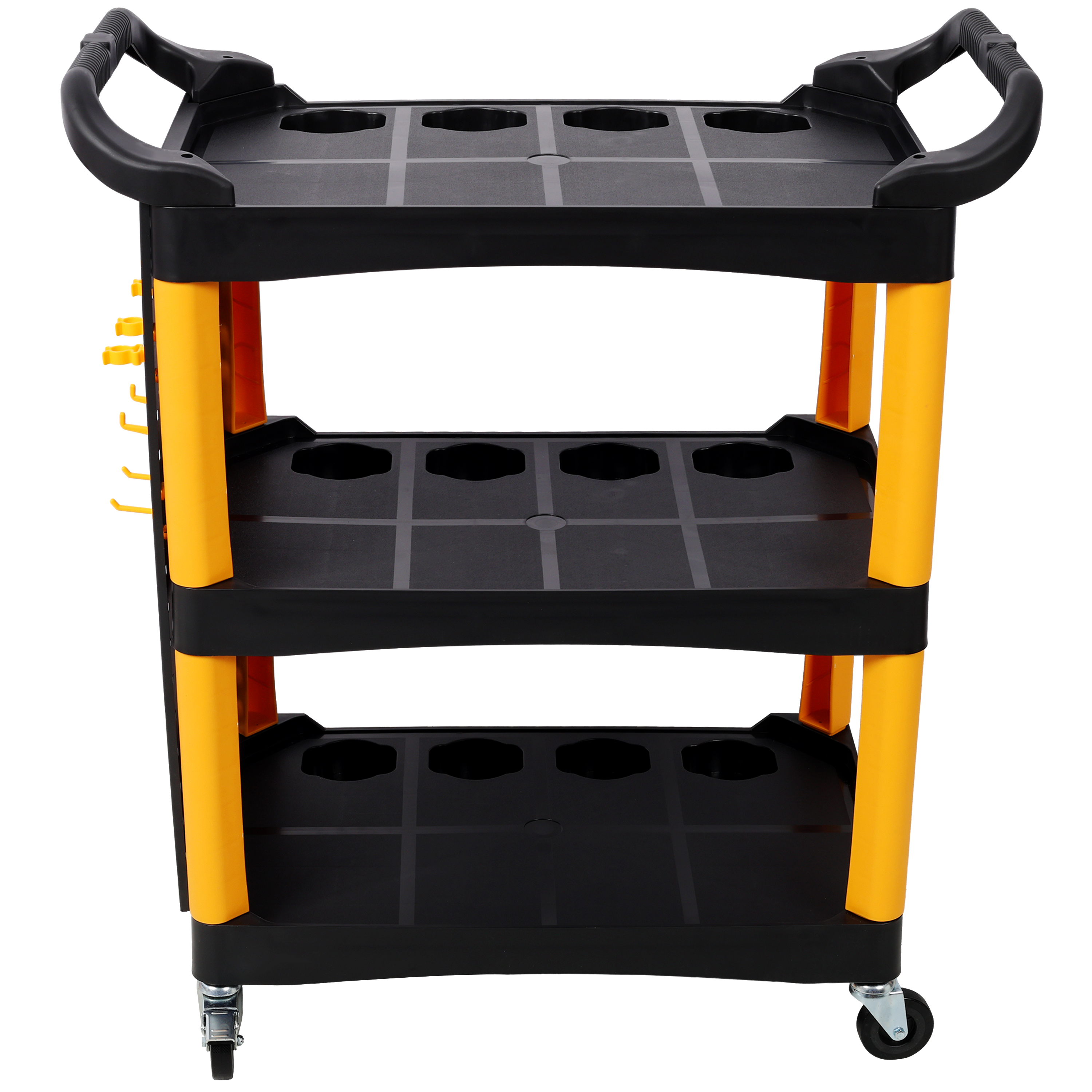 3 Tier Rolling Auto Detail Cart With Wheels,With Panel & Hook,for Detailers Garage, Workshop, Repair Shop, Storage Tool, Yellow&Black