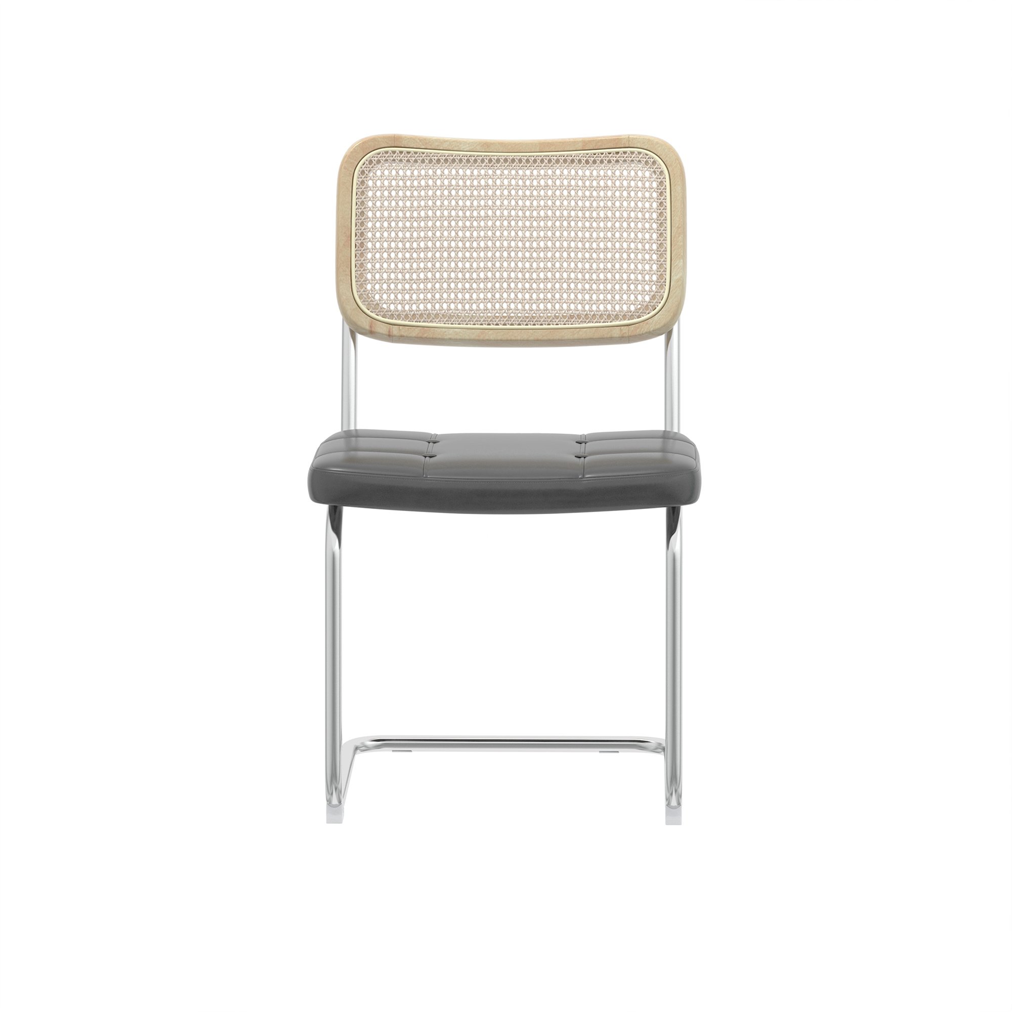 Set of 4, Leather Dining Chair with High-Density Sponge, Rattan Chair for Dining room, Living room, Bedroom, Gray