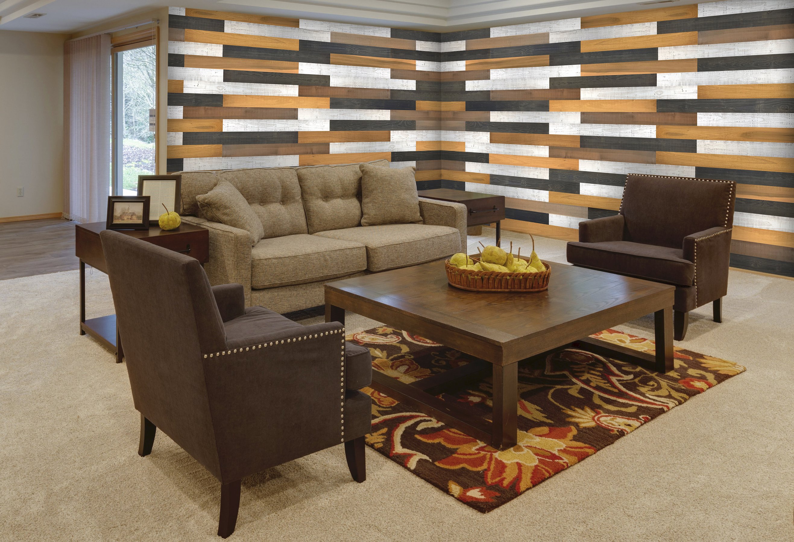 Home > Thermo-treated 1/4 in. x 5 in. x 4 ft. Brown/Black/White Mixed Colors Wood Wall Planks 10 Sq. Ft. per Pack