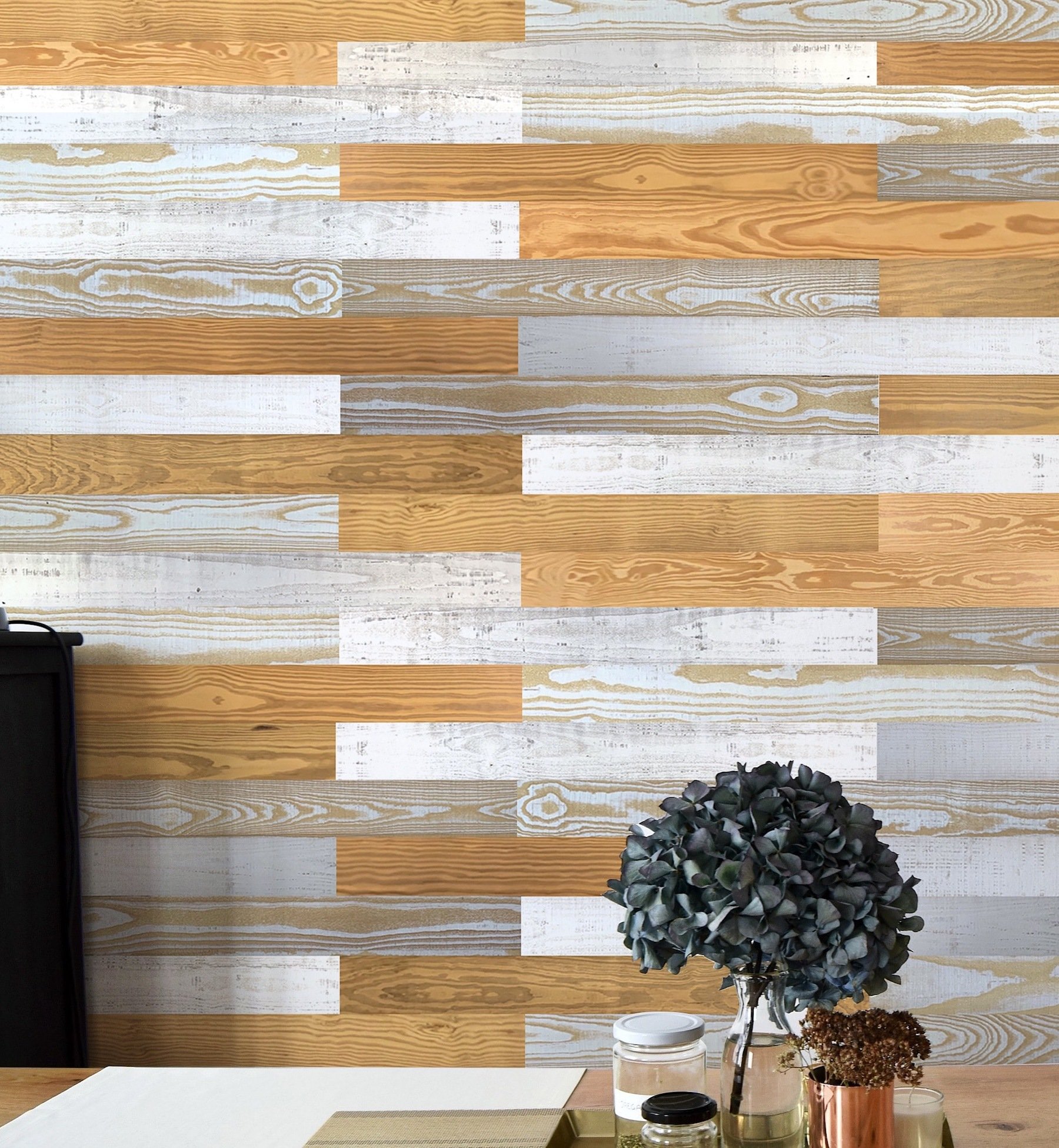 Home > Thermo-treated 1/4 in. x 5 in. x 4 ft. Gold/White/Whitewash Mixed Colors Wood Wall Planks 10 Sq. Ft. per Pack